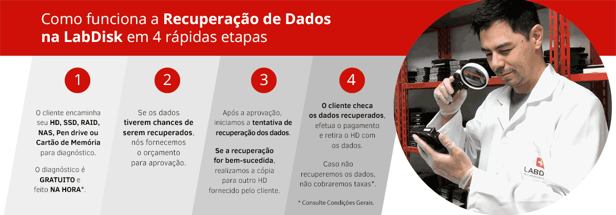 A LabDisk atua diariamente na recuperação de dados de cartões de memória em diversos cenários de mau funcionamento, como: